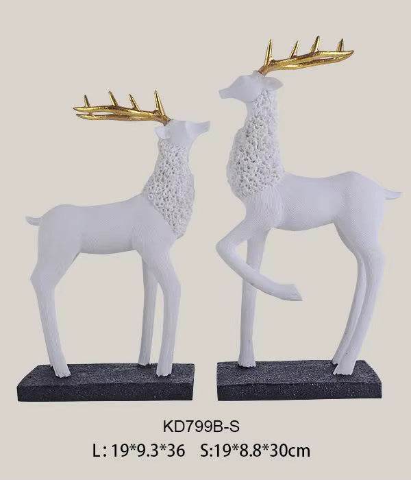 თუ ეძებთ შთამბეჭდავ და დახვეწილ დეკორს, რომელიც იდეალურია როგორც ინტერიერისთვის, ასევე განსაკუთრებული საჩუქრისთვის, ეს ირმების კომპლექტი შესანიშნავი არჩევანია. თეთრი მინიმალისტური ფორმა და ოქროსფერი რქები ქმნის თანამედროვე, სუფთა და მდიდრულ ვიზუალურ ეფექტს.